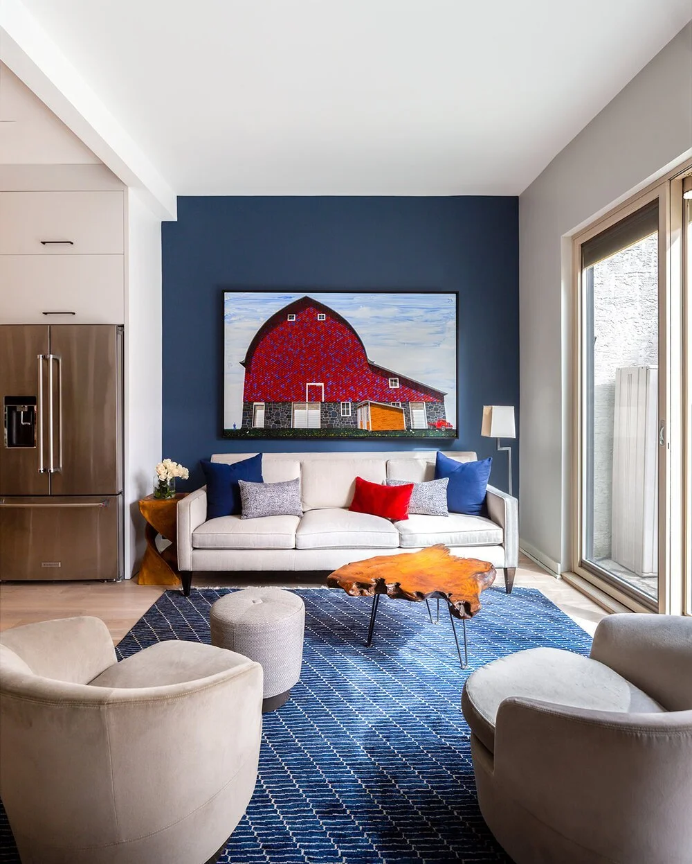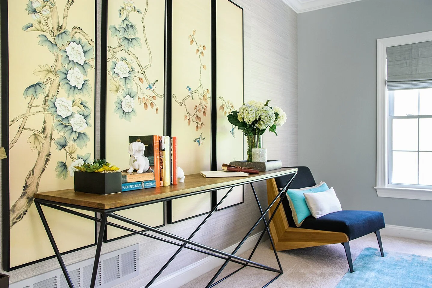 Keeping a space minimal and less cluttered helps to maintain the integrity of your home’s true size. At MTI, we like to opt for bigger objects or pieces of art when designing a space rather than adding an abundance of smaller scaled art or decor accessories. This design strategy creates a focal point for your guests rather then many small décor items that can easily overwhelm the space. Going for larger, bold artwork makes the room feel more expansive and expensive.