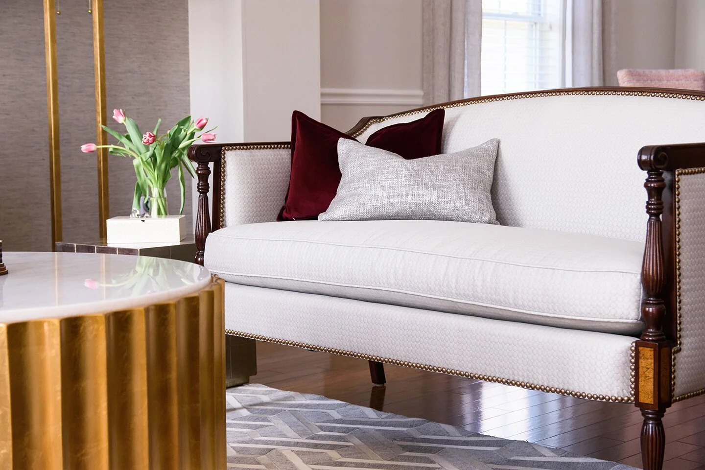 We suggest furniture that has legs to keep your space feeling more open and not weighed down by heavy furniture. While we don’t suggest only incorporating furniture that has wooden legs, mixing furniture pieces will provide a balance in profiles and also bring variation in your space.